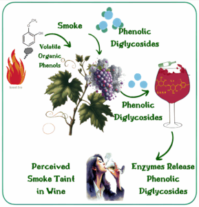 Caffrey, A., Lerno, L., Rumbaugh, A., Girardello, R., Zweigenbaum, J., Oberholster, A., & Ebeler, S. E. (2019). Changes in Smoke-Taint Volatile-Phenol Glycosides in Wildfire Smoke-Exposed Cabernet Sauvignon Grapes throughout Winemaking. American Journal of Enology and Viticulture, 70(4), 373-381. https://doi.org/10.5344/ajev.2019.19001